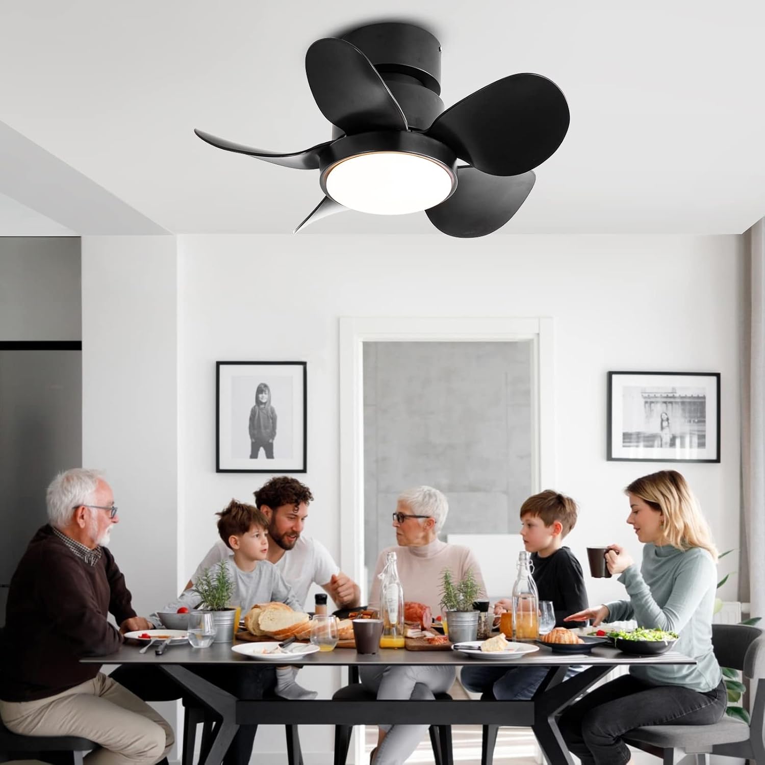 Small Ceiling Fan with Light: low profile ceiling fan with 5 ABS fan blades are like blooming flowers, size: 22*22*9.7 inches. The low profile and compact design of the ceiling fan can be perfectly used in tight spaces while also moving a lot of air with an airflow of 3419CFM. The matte black ceiling fan with light is perfect for decorating bedrooms, dining rooms, living rooms, kitchens, hallways, gyms, etc.