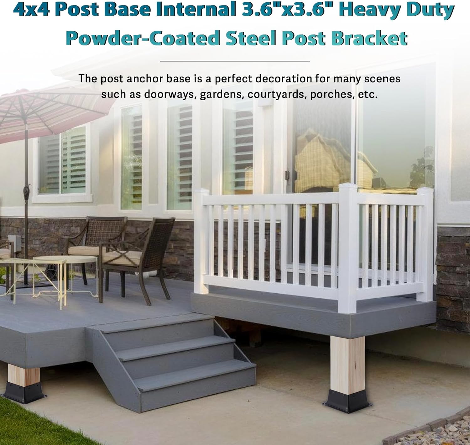 Strong & Sturdy Post Base Kit: The post base and screws adopts steel plate with a powder coating process, ensuring corrosion resistance and a long-lasting performance. Constructed from solid steel material, the post base kit provides robust support for the post anchor, increasing its service life. And our 4×4 post base has a bright black appearance and more texture than others