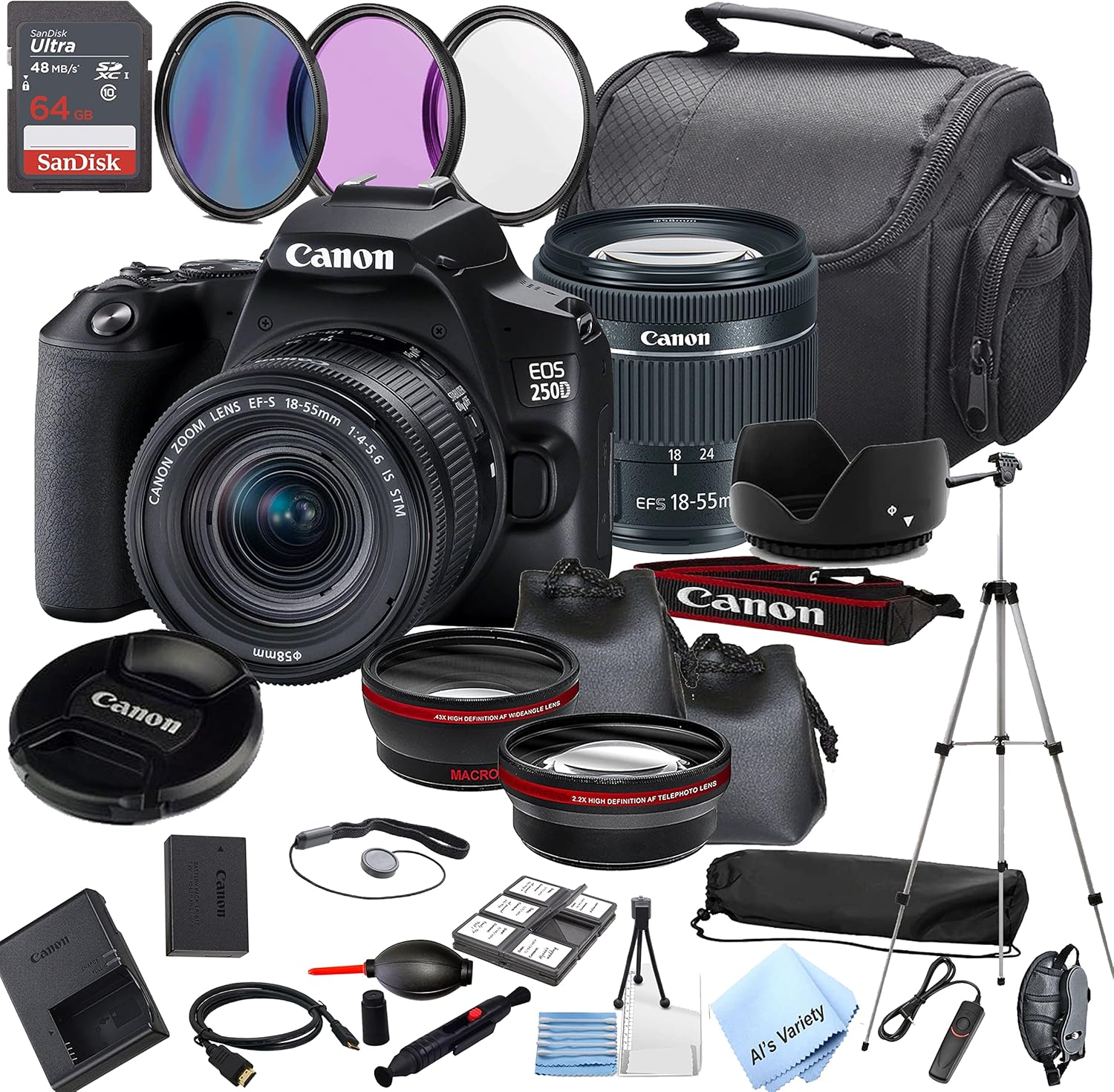 Canon EOS 250D Rebel SL3 DSLRCamera Body (Import Model)- 24.1MP APS-C CMOS Sensor, DIGIC 8 Image Processor, 3.0 inch 1.04m-Dot Vari-Angle Touchscreen, UHD 4K24p Video and 4K Time-Lapse Movie, UHD 4K Video Recording, 9-Point Phase-Detection AF and Dual Pixel CMOS AF, Optical pentamirror viewfinder