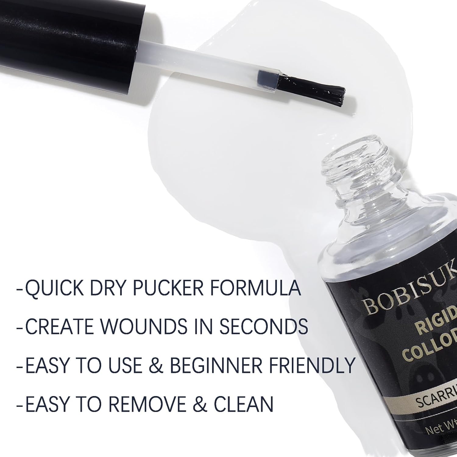 Review: BOBISUKAâs rigid collodion kit is fantastic for creating realistic, long-lasting scars for Halloween or cosplay. The scarring liquid dries quickly and puckers the skin perfectly to give that authentic, layered scar effect, and the built-in brush applicator makes it super easy to apply. I love how you can adjust the depth by adding multiple layers. Plus, it comes with a remover that works effortlessly to clean up afterward. Whether for stage, film, or just a spooky costume party, this set is a must-have for SFX makeup!