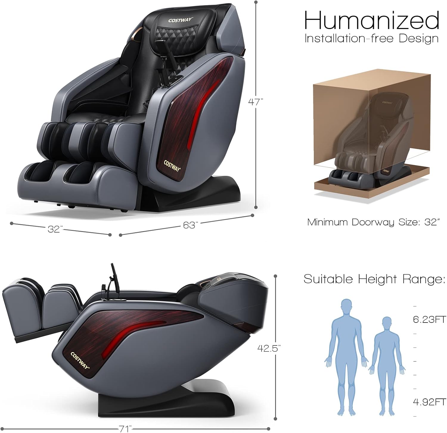 [Humanized & Space-saving Design]The retractable calf frame can be adjusted in 7” and accommodate to people of different heights from 4.9’ to 6.2’. With the wall clearance of only 2.4”, the massage chair won`t take up much room. Plus, the holder on the armrest is convenient to hold your phone and the remote control.