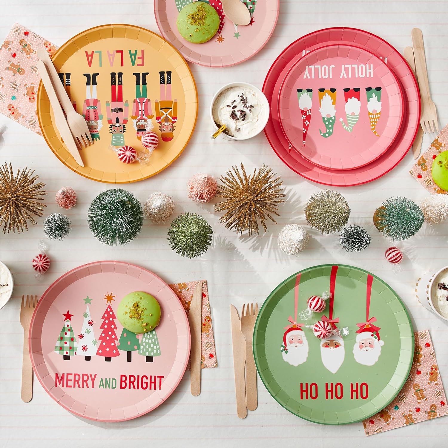 CHRISTMAS CHARACTERS PARTY SUPPLIES – Featuring Santa, Christmas trees, nutcrackers, and gnomes, these winter party paper plates are sure to impress your guests. Customers across the country have used our festive plates to set a tablescape that transports guests to a winter wonderland.