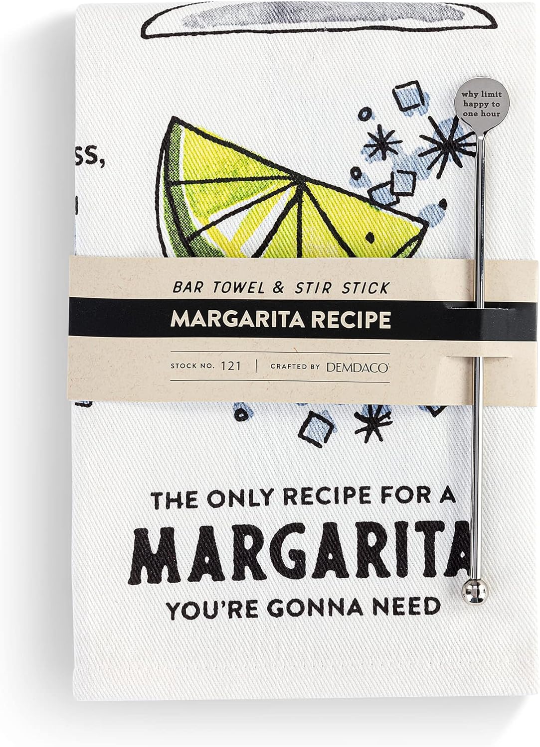 A cocktail recipe, a kitchen towel and a bar accessory all in one, how could you say no; The Margarita Bar Towel & Stir Stick Set is the perfect bar accessory to not only help keep your space clean, but to help you create a deliciously refreshing masterpiece as well