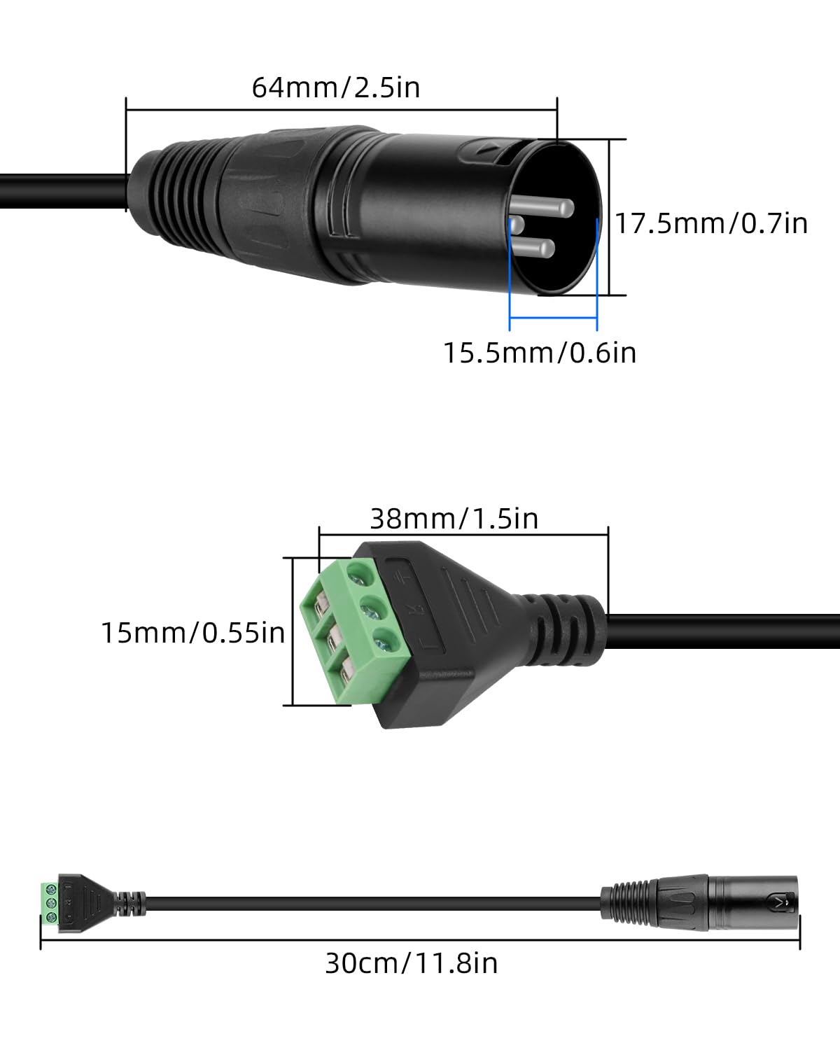 Precise 3-pin XLR interface matching: smooth and stable, not easy to loosen, to ensure the stability of the connection, to avoid sound interruption or noise problems caused by poor contact.