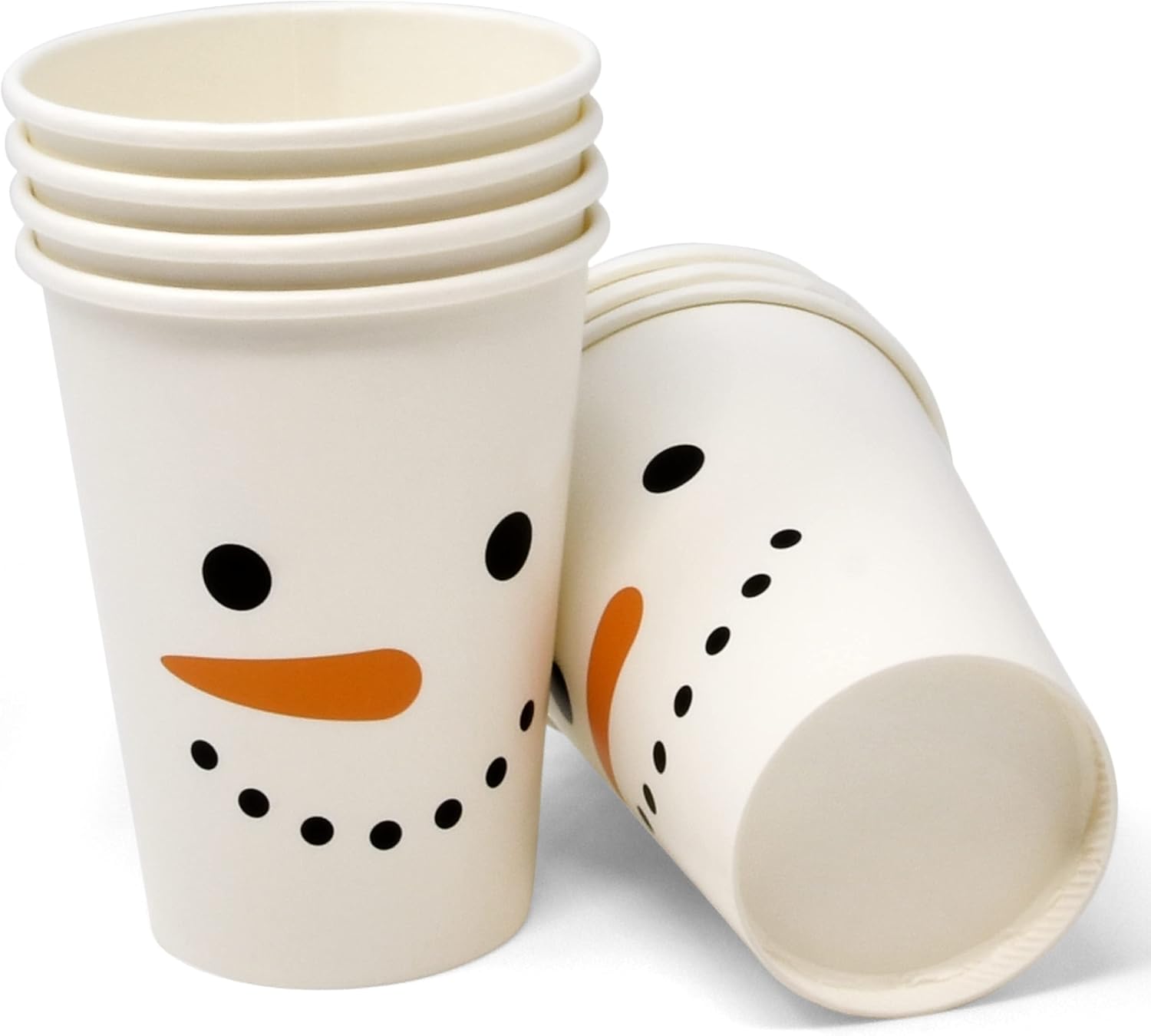 Christmas Party Cups Serves 50: Gift Boutique Disposable Christmas cups set includes 50 cups featuring a snowman face eyes carrot nose and mouth on a white background.