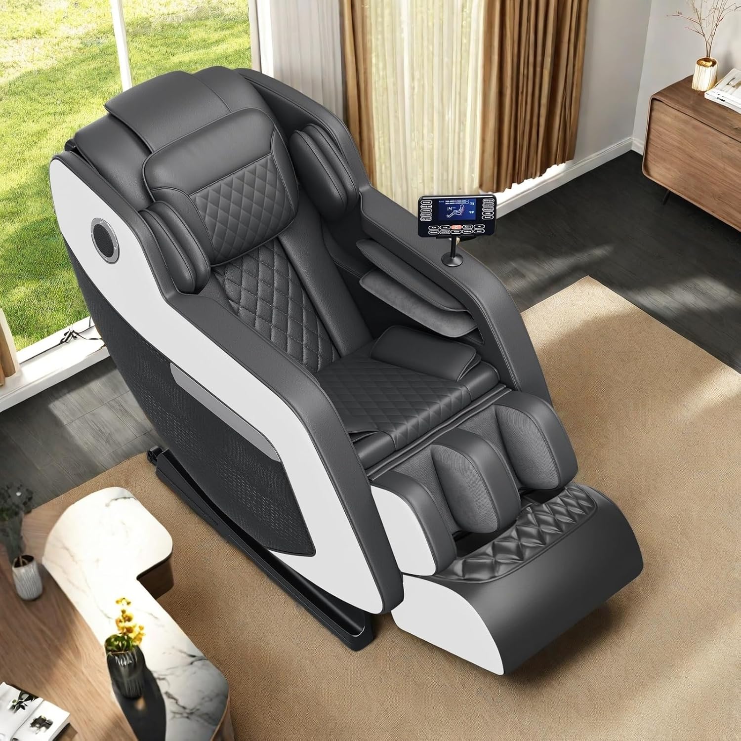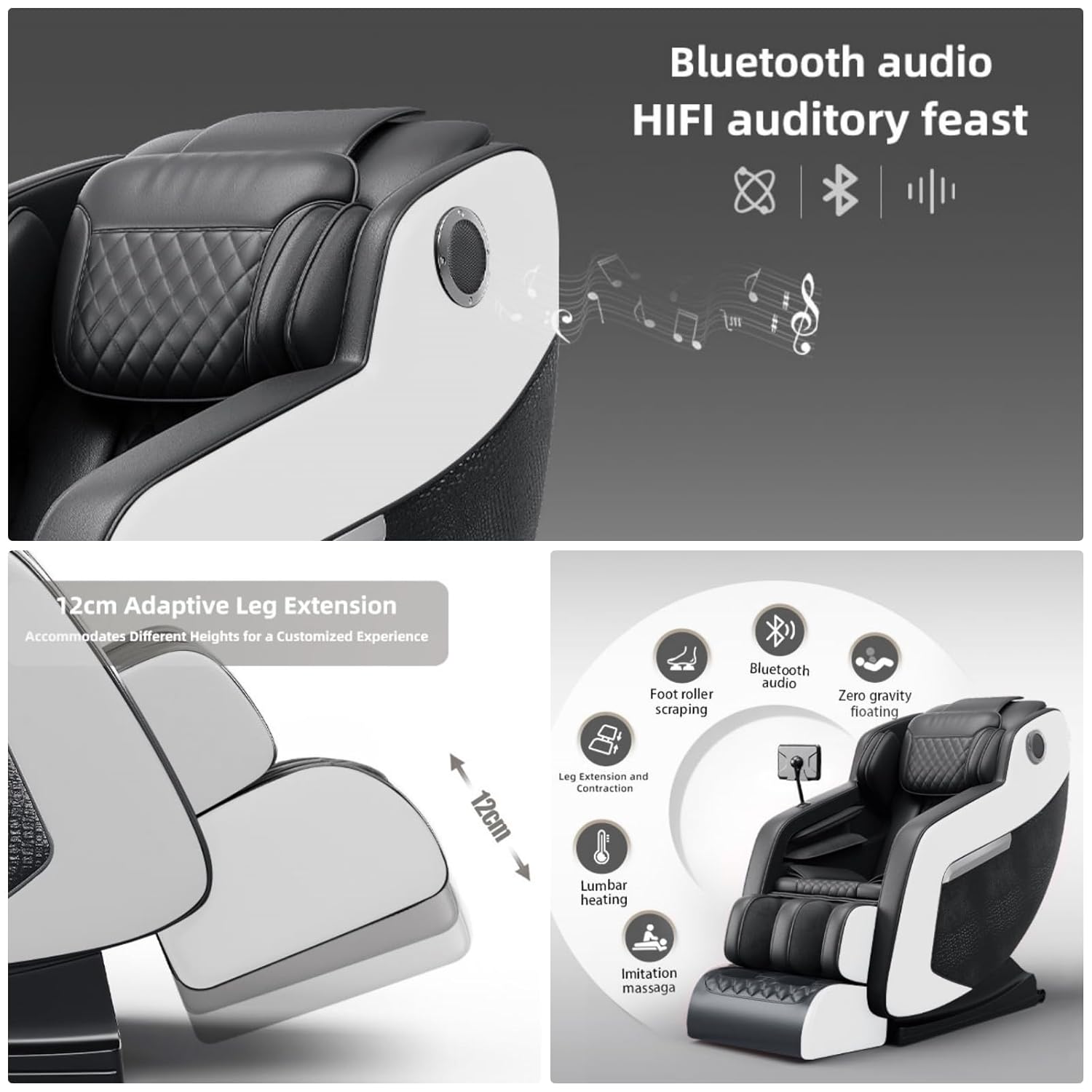 ChicFurnit Massage Chair, Full Body Massage Recliner with 5 Distinct Massage Techniques & Foot Wrap Around Massage, Zero Gravity Recliner Chair with Advanced Roller and Heating System, Black&White