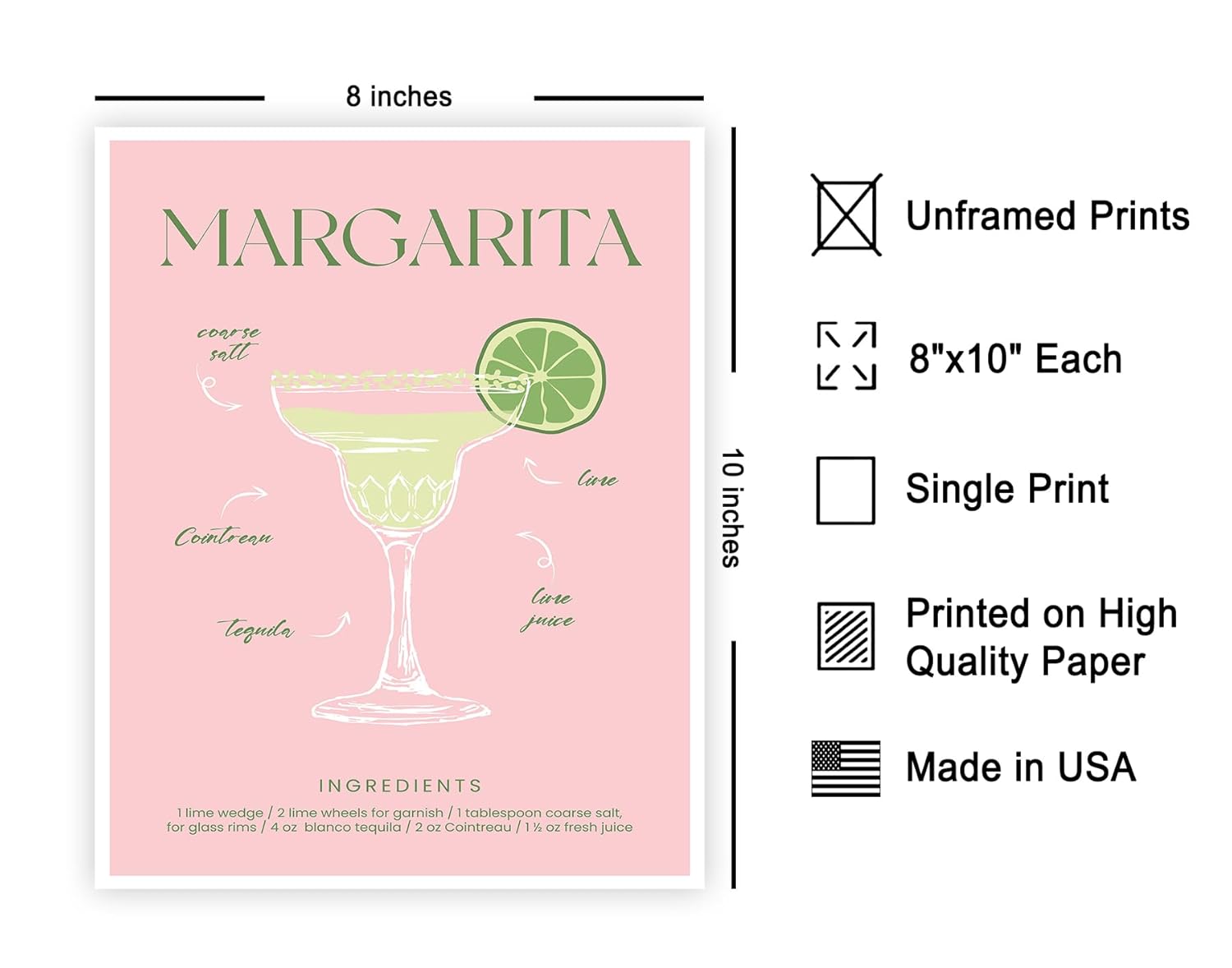 Monem Art Margarita Recipe Poster – Retro Cocktail Print – Margarita Art – Alcohol Art – Bartender Art – Food & Drink Art – Chic Boho Art – Great Bar or Kitchen Decor – 8×10 UNFRAMED Wall Art