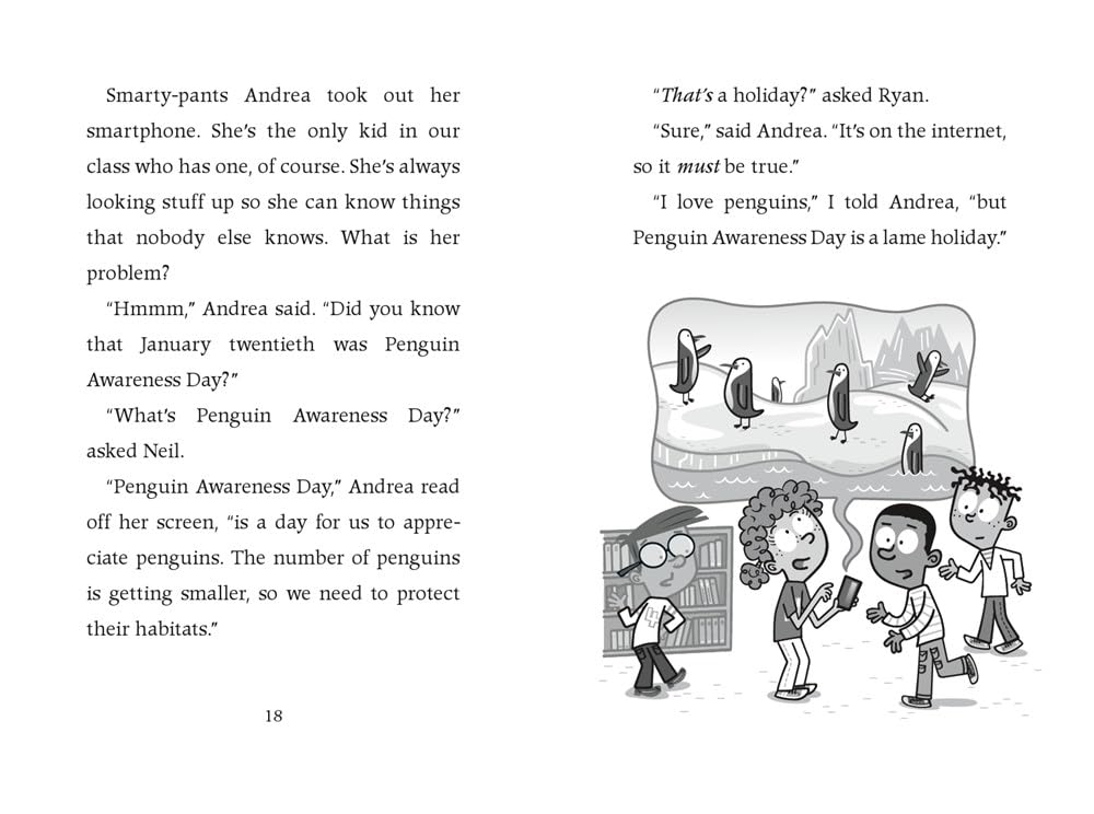 Morale is down, but Mrs. Roopy, the librarian, has a trick up her sleeve. Instead of celebrating traditional holidays, the school will celebrate real holidays that no one has ever heard of! Will the kids be able to save the year with their fun festivities, or will Dr. Carbles’s antiholiday agenda win out?