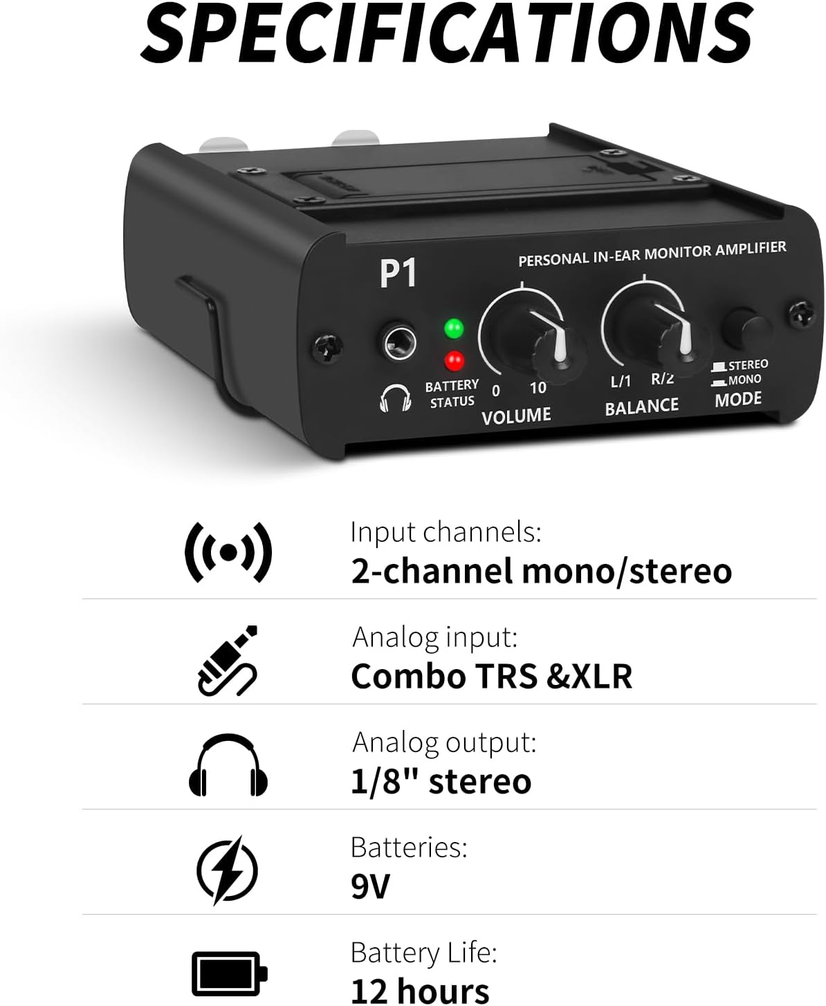Personal in-Ear Monitor System: The JCANOL powerful in ear monitor amplifier has more than enough power to boost even the weakest line level signal, all while maintaining signal integrity, zero feedback, and lightning-fast response time.