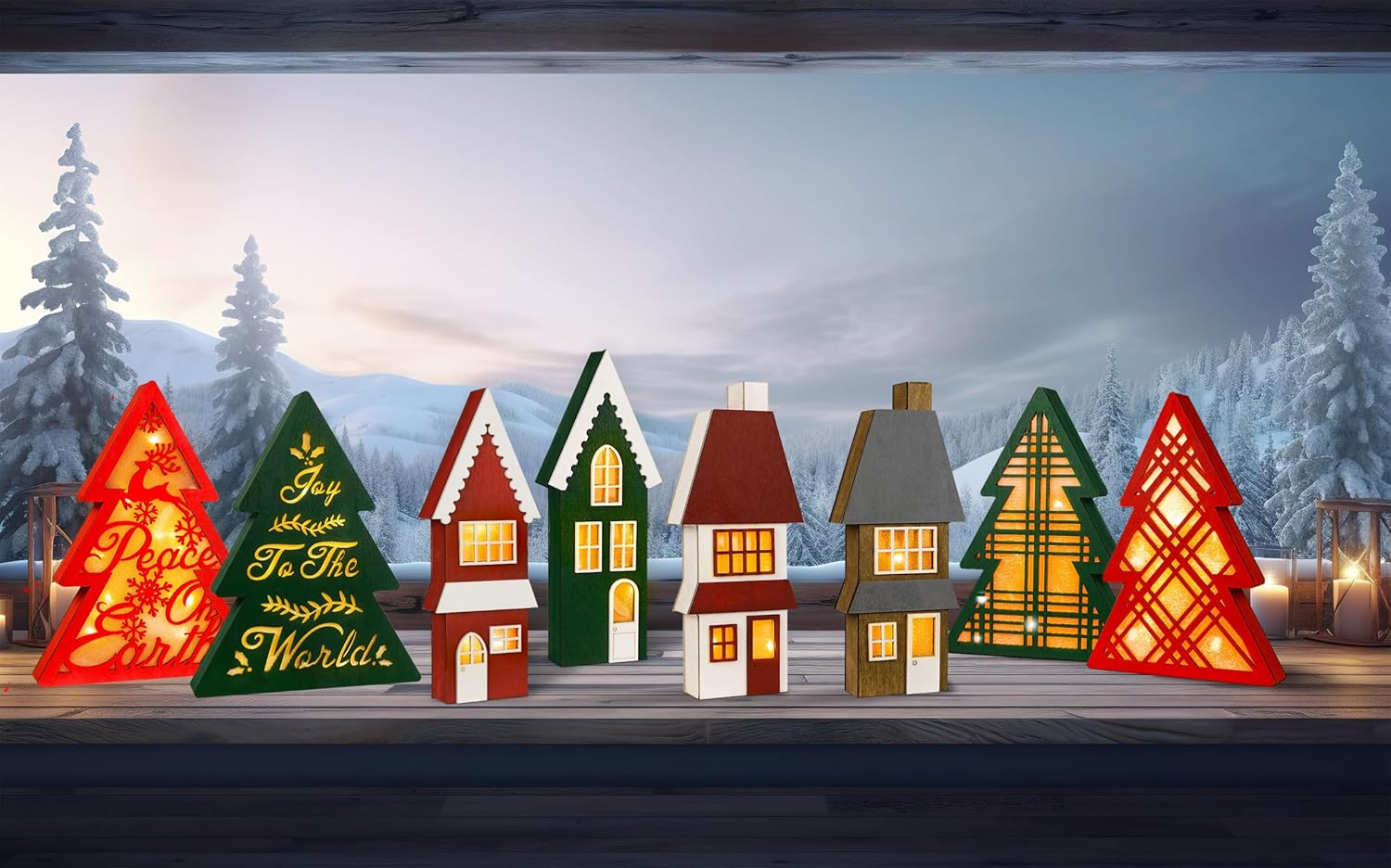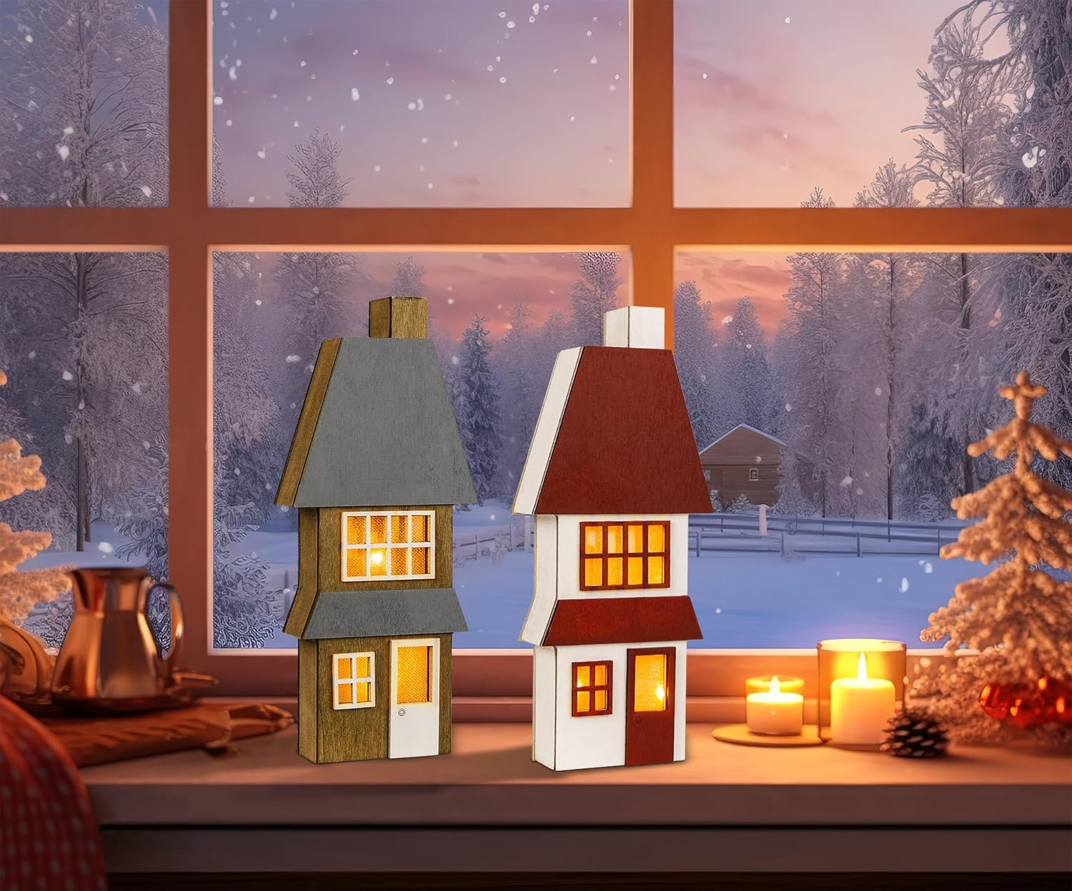 Plywood construction xmas house dimension 4″L x 9.25″H x 1.38″D.
