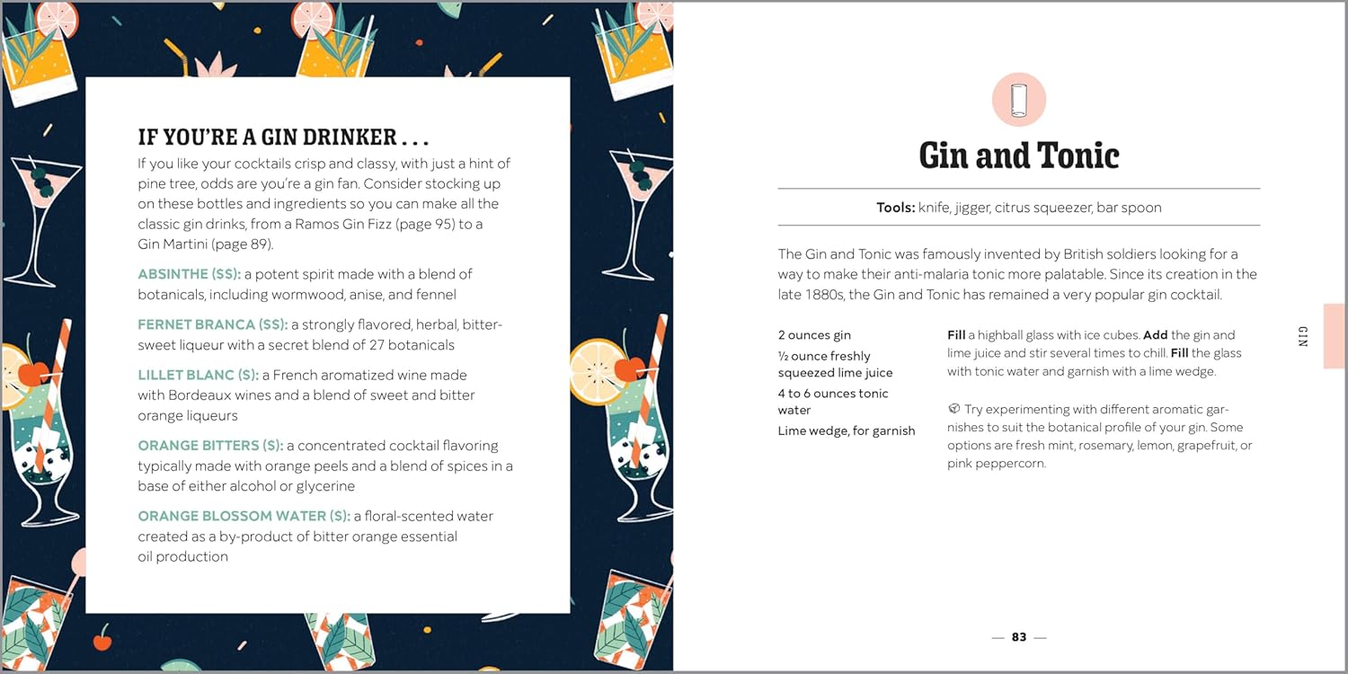 Tailored for taste―Discover the ingredients to keep on hand to complement specific spirits such as gin, rum, whiskey, and more.
