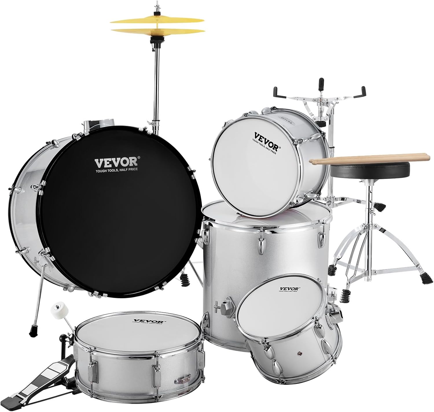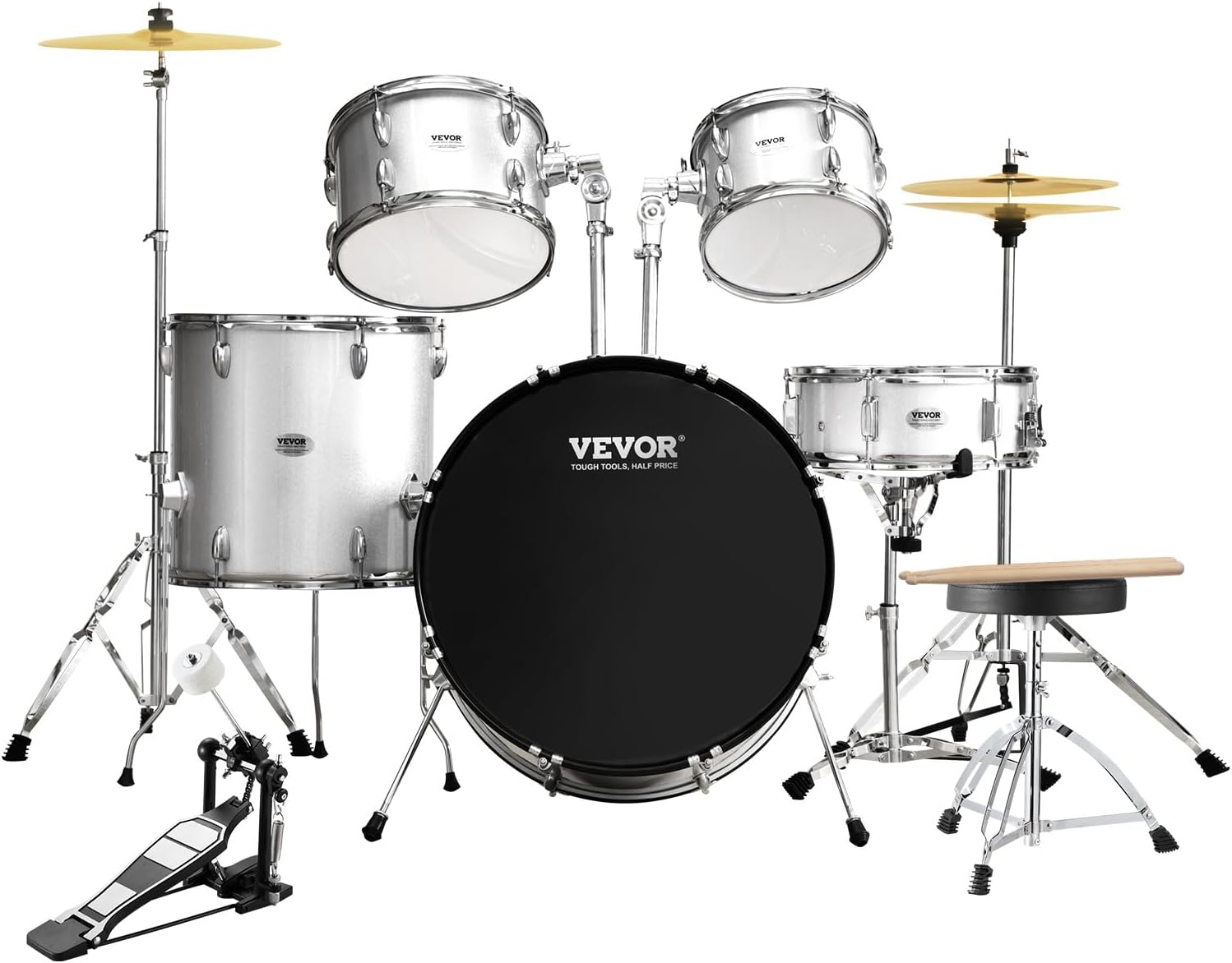 5-Piece Beginner-to-Pro Drum Set: Embark on a musical journey from novice to pro with our adult drum kit! It includes a 22” bass drum with pedal, 14” snare drum, 10” & 12” tom tom, and 16” floor tom, along with a 10” suspended cymbal and an 8” hi-hat cymbal with stand, enabling you to explore complex rhythms and unleash your creativity in music composition.